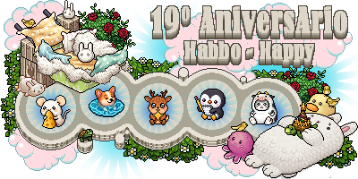 ¡Habbo-Happy celebra su 19º aniversario del 16 al 22 de febrero con una gran fiesta en la que los animales serán los protagonistas! Y podrás conseguir cinco nuevas placas, ocho Nutrias Zafiro, un montón de créditos y cajas Habbo Club a la vez que celebramos juntos este cumpleaños tan especial siendo Happys. ¡Atent@, que empieza!